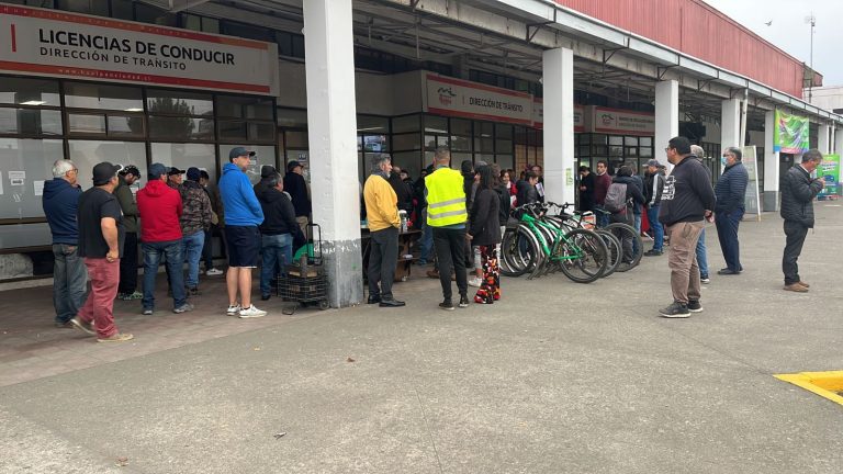 | Gente agolpada a las afueras de la dirección de tránsito de Hualpén hace un par de años |